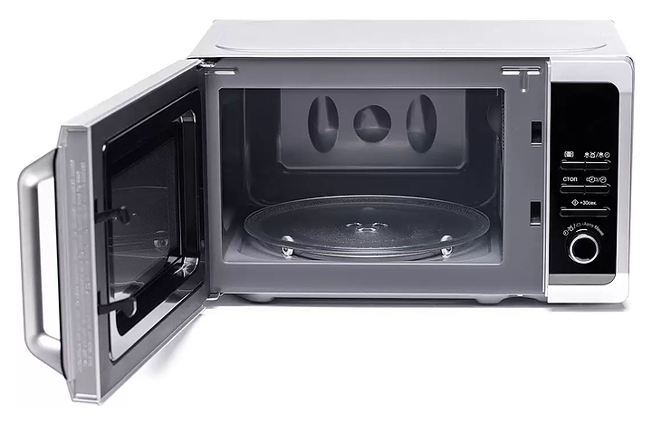 Микроволновая печь Sharp R-2852RSL предназначена для приготовления пищи, подогрева готовых блюд и размораживания полуфабрикатов в частных домах, квартирах, отелях и офисах. Модель оснащена кнопочным управлением, таймером, ЖК-дисплеем и часами. Поворотный столик выполнен из стекла, внутренняя отделка покрыта эмалью. Особенности: