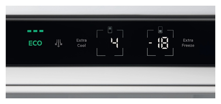 Extra Freeze: быстрое замораживание большого объема продуктов с автоматическим завершением через максимум 52 ч в зависимости от загружаемого объема