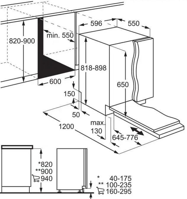 Встраиваемая посудомоечная машина Electrolux EEM48321L предназначена для гигиенической обработки и последующей сушки различной посуды в гостиничных комплексах и домашних условиях. Модель оснащена камерой с откидной дверью с интегрированной рукояткой, верхним и нижним моечными рукавами, дозаторами моющих и ополаскивающих средств, устройством умягчения воды, кабелем питания с вилкой, расположенной на верхнем торце двери панелью управления с сенсорными функциональными клавишами, светодиодными индикаторами и дисплеем с цифровыми и символьными сегментами индикации. Внутренняя облицовка камеры и двери выполнена из высококачественной нержавеющей стали, корпус – из металла с антикоррозийным покрытием, панель управления – из полимера черного цвета.