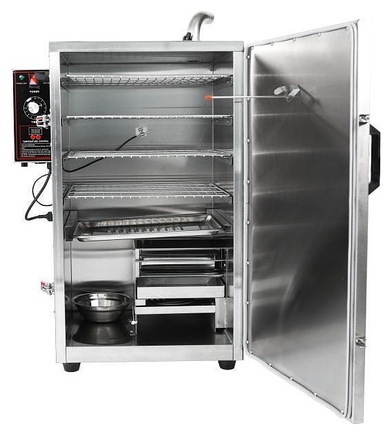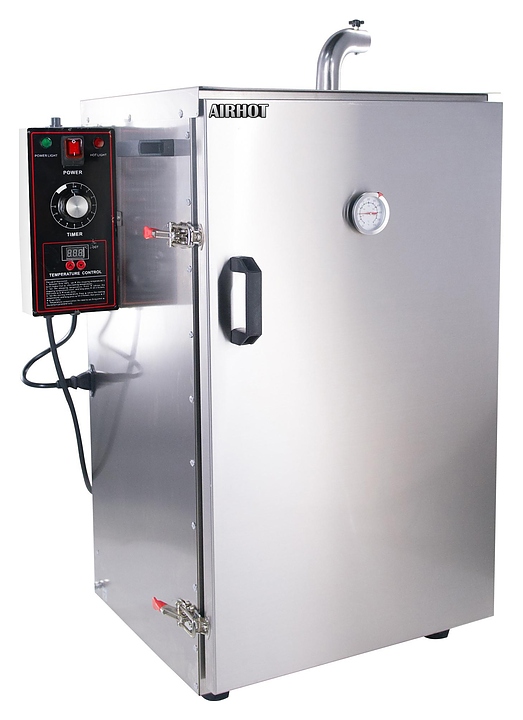 Электрическая печь-коптильня Airhot ESM-101 используется на предприятиях общественного питания и торговли, а также в домашних условиях для холодного и горячего копчения мяса, рыбы, птицы, колбас, сыров и других продуктов. Модель оснащена рабочей камерой с правосторонней распашной дверью и выносным электромеханическим блоком управления. Корпус выполнен из нержавеющей стали марки AISI 201, полки – из металла с хромированной поверхностью. Комплектация:
