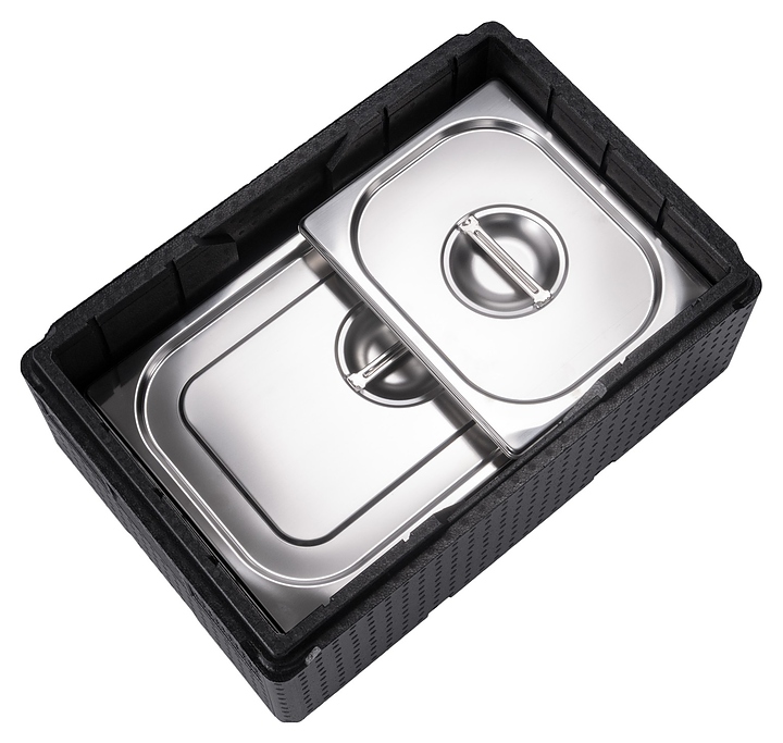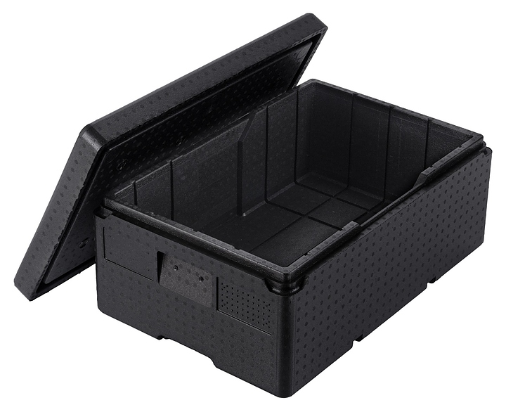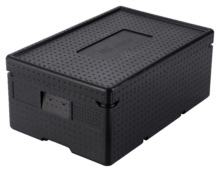Термоконтейнер MGprof 77606 используется службами доставки предприятий общественного питания и пищевой промышленности, а также в быту, во время туристических походов, пикника, рыбалки или дорожных путешествий для хранения и транспортировки приготовленных блюд, напитков, льда, свежих фруктов и других пищевых продуктов в автономных изотермических условиях. Модель прямоугольно ориентированной формы оснащена съемной плотно прилегающей крышкой. Изделие выполнено из высококачественного вспененного полипропилена (EPP) черного цвета. Особенности: