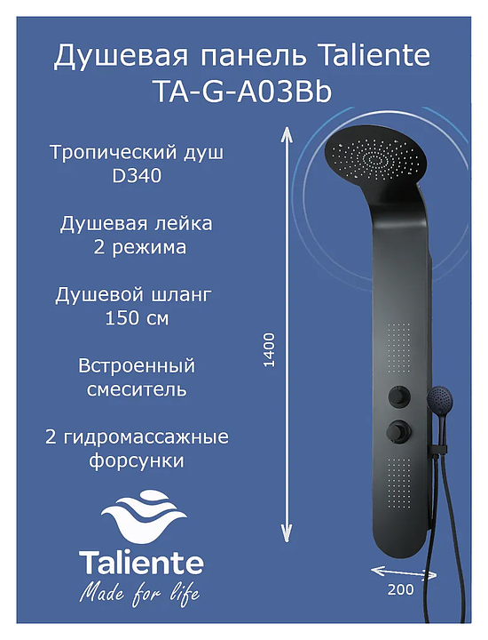 Панель душевая гидромассажная Taliente Amato TA-G-A03Bb без излива, черный