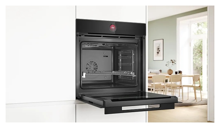 Духовой шкаф Bosch HBG934BB1 используется в квартирах и частных домах для приготовления широкого спектра блюд из овощей, мяса, птицы и рыбы, а также выпечки десертов и хлебобулочных изделий. Модель оснащена цветным сенсорным TFT дисплеем, внутренним освещением галогенной лампой, многоточечным термощупом PerfectRoast и парой телескопических направляющих. В комплект поставки входят комбинированная решетка, эмалированный противень и универсальный противень. Особенности:
