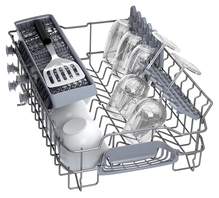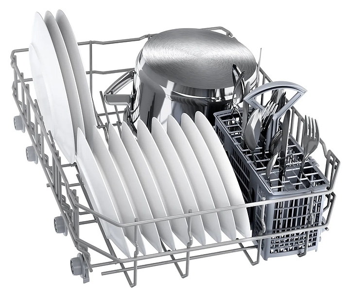 Посудомоечная машина Bosch SPV4HKX10E предназначена для гигиенической обработки и последующей сушки различной посуды в домашних условиях. Модель оснащена инверторным двигателем EcoSilence Drive и закрытой панелью управления с дисплеем и кнопками. Внутренний резервуар выполнен из нержавеющей стали и пластика. В комплект поставки входят 2 кассеты. Особенности: