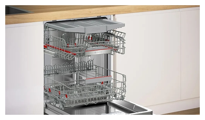 Посудомоечная машина Bosch SMD6ECX12E предназначена для гигиенической обработки и последующей сушки различной посуды в домашних условиях. Модель оснащена инверторным двигателем EcoSilence Drive, закрытой панелью управления с дисплеем и сенсорными кнопками. Внутренний резервуар выполнен из нержавеющей стали. В комплект поставки входят 3 кассеты. Особенности: