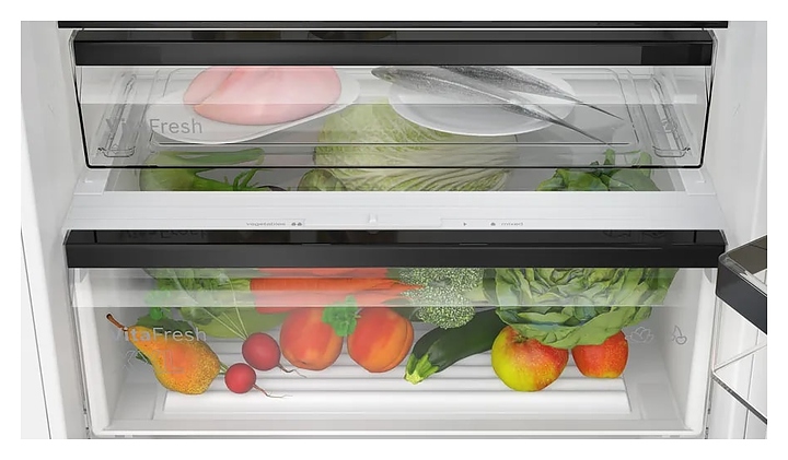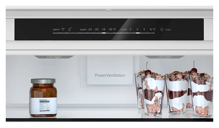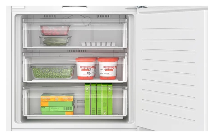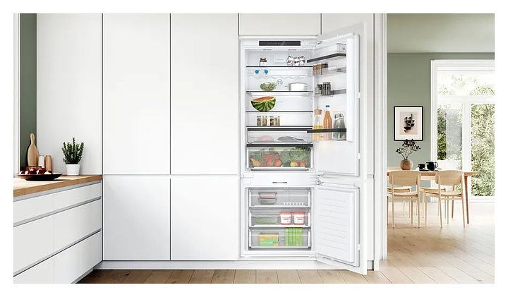 Встраиваемый холодильник Bosch KBN96SDD0 предназначен для охлаждения, замораживания, кратковременного и длительного хранения продуктов питания в частных домах, квартирах, отелях и офисах. Модель оснащена электронной панелью с сенсорными элементами, дисплеем, 2 перенавешиваемыми дверцами, 4 полками, 3 из которых регулируются по высоте, 3 ящиками и внутренней светодиодной подсветкой. Особенности: