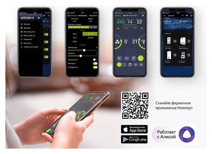 Очиститель воздуха Ballu ONEAIR ASP-200SPW предназначен для фильтрации воздуха в частных домах, квартирах, отелях и офисах. Модель оснащена 6 ступенями очистки, цветным OLED дисплеем, полифоническим звуковым сигналом и встроенным Wi-Fi модулем для удаленного управления с мобильных устройств. Инверторный двигатель гарантирует тихую и производительную работу. Встроенный датчик РМ2,5 в зависимости от качества воздуха автоматически управляет интенсивностью очистки в режиме циркуляции. Капсула для масел насыщает воздух ароматом. УФ-обеззараживание обеспечивает защиту от вирусов и бактерий. В комплект поставки входят фильтр тонкой очистки HEPA11, фильтр тонкой очистки М5, фильтр предварительной очистки, угольный фильтр, нагревательный элемент, пульт дистанционного управления, монтажный шаблон и крепления. Особенности: