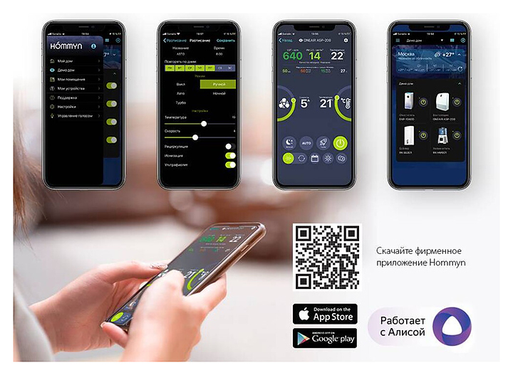Очиститель воздуха Ballu ONEAIR ASP-200SMAX предназначен для фильтрации воздуха в частных домах, квартирах, отелях и офисах. Модель оснащена 6 ступенями очистки, цветным OLED дисплеем, полифоническим звуковым сигналом и встроенным Wi-Fi модулем для удаленного управления с мобильных устройств. Инверторный двигатель гарантирует тихую и производительную работу. Встроенный датчик РМ2,5 в зависимости от качества воздуха автоматически управляет интенсивностью очистки в режиме циркуляции. Капсула для масел насыщает воздух ароматом. УФ-обеззараживание обеспечивает защиту от вирусов и бактерий. Датчик СО₂ контролирует уровень углекислого газа в помещении и автоматически управляет клапаном притока, поддерживая оптимальный уровень СО₂. Нагревательный элемент выполнен из керамики. Передняя панель покрыта тканью. В комплект поставки входят датчик СО₂, нагревательный элемент, фильтр тонкой очистки HEPA11, фильтр тонкой очистки М5, фильтр предварительной очистки, угольный фильтр, пульт дистанционного управления, монтажный шаблон и крепления. Особенности: