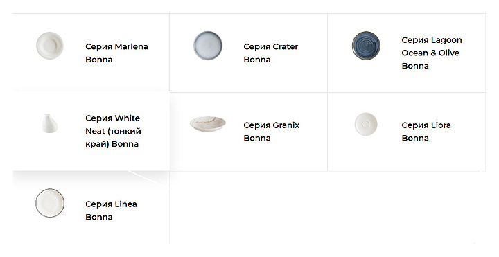 Турецкая компания Bonna производит блюдца, салатники, кружки, блюда и прочую посуду для предприятий общественного питания и торговли. Все выпускаемые изделия выполнены из профессионального твердого фарфора, устойчивого к сколам, механическим и термическим воздействиям. ENTERO - официальный партнёр