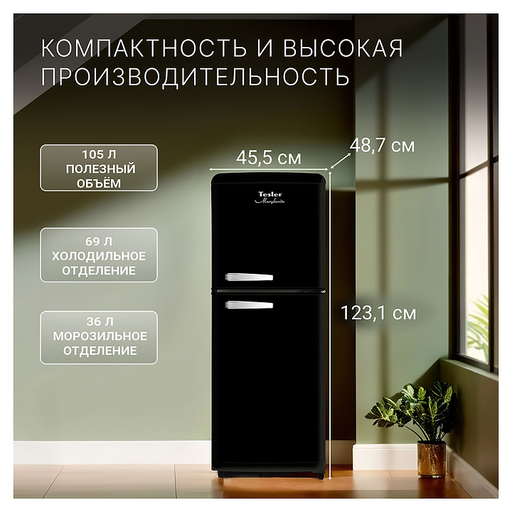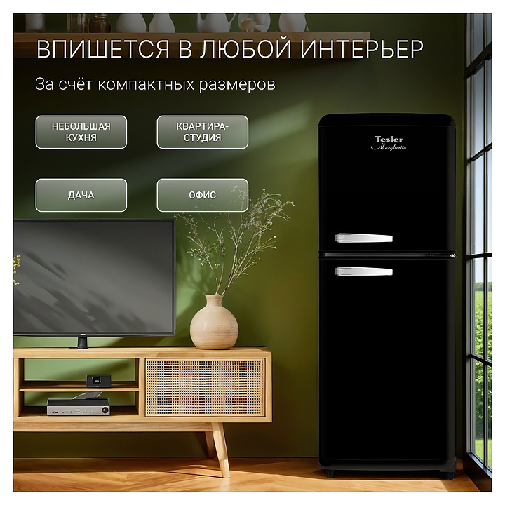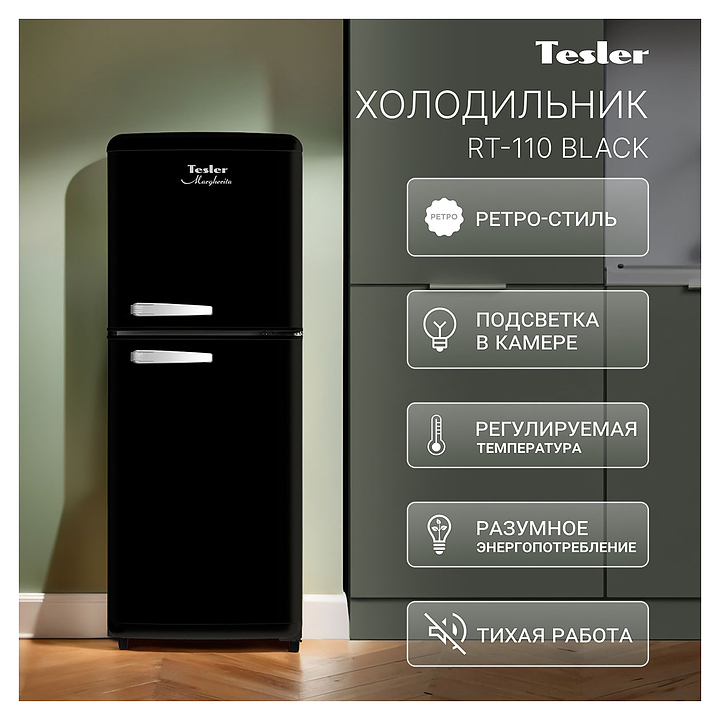 Двухкамерный холодильник TESLER Margherita RT-110 BLACK 110 л, черный