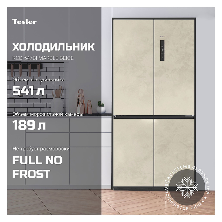 Многокамерный холодильник TESLER RCD-547BI MARBLE BEIGE 547 л, бежевый