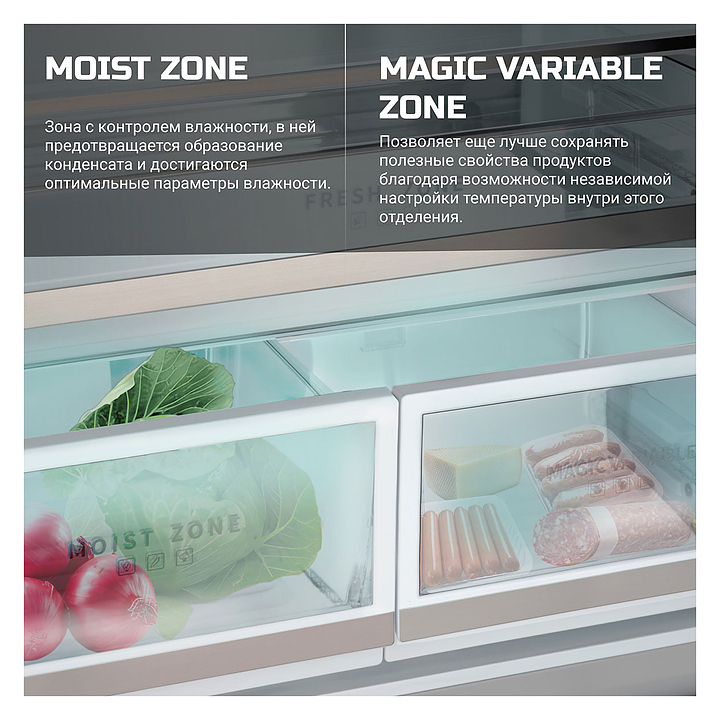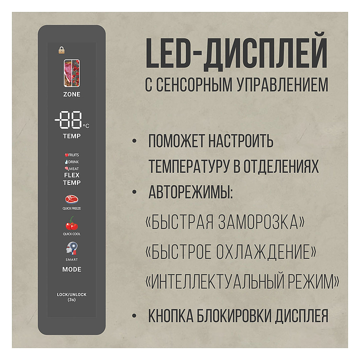 Многокамерный холодильник TESLER RCD-547BI MARBLE BEIGE предназначен для хранения, охлаждения и заморозки продуктов питания и напитков, а так же готовой пищи в частных домах, квартирах, отелях и офисах. Модель оснащена сенсорным управлением, а также инверторным компрессором классом энергопотребления А+. Корпус выполнен из высококачественной стали, съемные полки из прочного стекла. Холодильное отделение: