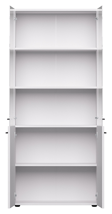 Шкаф для документов Everprof EVO используется в офисных помещениях в составе линейки мебели для персонала EVO или отдельно. Модель оснащена 2 глухими и 2 прозрачными распашными дверьми. Каркас, нижние фасады и полки выполнены из ЛДСП, прозрачные фасады - из стекла, задняя стенка - из HDF. Дополнительные характеристики: