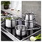 Набор посуды ROESLE Elegance 130149 используется на предприятиях общественного питания и торговли, а также в домашних условиях для приготовления блюд на любых типах варочных поверхностей, включая индукционные. Инкапсулированное дно с алюминиевым сердечником эффективно сохраняет тепло и гарантирует быструю и равномерную передачу тепла. Практичный ободок по всему периметру для удобного слива без капель. Возможно мытье в посудомоечной машине. Изделия выполнены из нержавеющей стали 18/10, крышки - из стекла. В комплект поставки входят 3 кастрюли, 3 крышки и 1 ковш. Дополнительные характеристики: