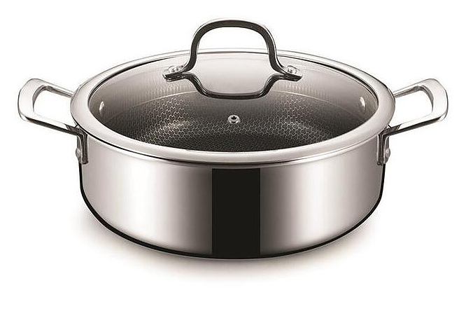 Кастрюля P.L. Proff Cuisine New Kitchen Grid 81280240 предназначена для профессионального использования на предприятиях общественного питания и торговли, в ресторанах, кафе, барах, а также домашних условиях для приготовления широкого спектра блюд, Используется на любых типах печей, в том числе индукционных. Модель оснащена двумя удобными ручками и прозрачной стеклянной крышкой с ободом из нержавеющей стали. Изделие выполнено по технологии TRI-PLY (с уникальной архитектурой рабочей поверхности, нанесенной лазером в виде рельефного сетчатого узора, последующим травлением и нанесением антипригарного покрытия) из алюминия и высококачественной нержавеющей стали, которая отличается прочностью, долговечностью и безопасностью, не изменяет вкусовые качества, запах и цвет пищи, так как не вступает в реакцию с её компонентами. Внимание! При использовании кастрюли необходимо свести к минимуму сильное нагревание, так как материал кастрюли обладает очень сильной теплопроводностью и как следствие быстрым нагревом. Это снизит прилипание продуктов и предотвратит подгорание. Особенности: