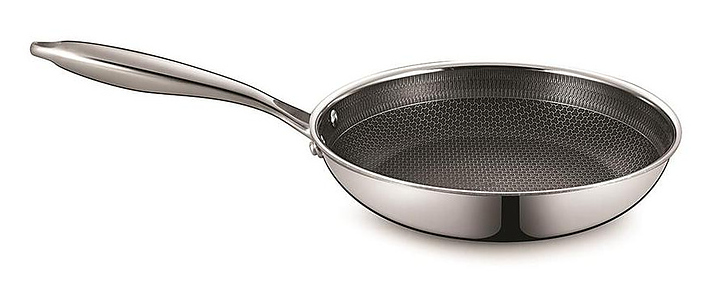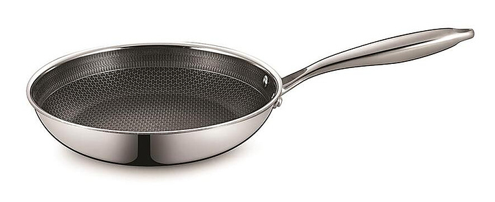 Сковорода P.L. Proff Cuisine New Kitchen Grid 81240770 предназначена для профессионального использования на предприятиях общественного питания и торговли, в ресторанах, кафе, барах, а также домашних условиях для приготовления широкого спектра блюд, Используется на любых типах печей, в том числе индукционных. Модель оснащена удобной ручкой с отверстием для подвешивания. Изделие выполнено по технологии TRI-PLY (с уникальной архитектурой рабочей поверхности, нанесенной лазером в виде рельефного сетчатого узора, последующим травлением и нанесением антипригарного покрытия) из алюминия и высококачественной нержавеющей стали, которая отличается прочностью, долговечностью и безопасностью, не изменяет вкусовые качества, запах и цвет пищи, так как не вступает в реакцию с её компонентами. Внимание! Важно! Перед первым использованием сковороду нужно вымыть с моющим средством, затем налить 2/3 воды от объема и довести до кипения на среднем огне, подождать 5 минут, выключить нагрев и оставить остывать естественным образом еще на 5 минут. Затем смажьте внутреннюю поверхность сковороды растительным маслом (или любым жиром) и нагревайте ее на среднем огне, 1-2 минуты. После дайте остыть и очистите ее водой. При дальнейшем использовании, необходимо свести к минимуму сильное нагревание, так как сковорода обладает очень сильной теплопроводностью. Это снизит прилипание продуктов к сковороде и предотвратит подгорание. Особенности:
