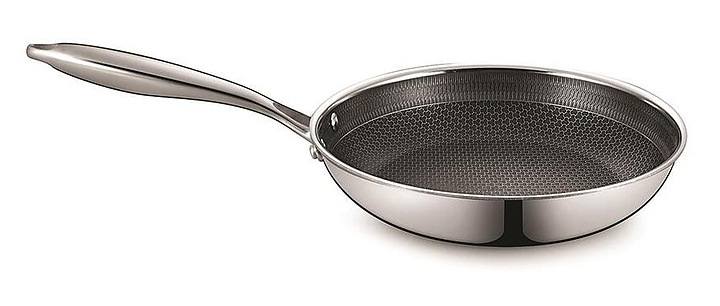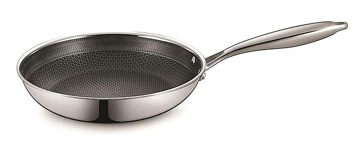 Сковорода P.L. Proff Cuisine New Kitchen Grid 81280250 предназначена для профессионального использования на предприятиях общественного питания и торговли, в ресторанах, кафе, барах, а также домашних условиях для приготовления широкого спектра блюд, Используется на любых типах печей, в том числе индукционных. Модель оснащена удобной ручкой с отверстием для подвешивания. Изделие выполнено по технологии TRI-PLY (с уникальной архитектурой рабочей поверхности, нанесенной лазером в виде рельефного сетчатого узора, последующим травлением и нанесением антипригарного покрытия) из алюминия и высококачественной нержавеющей стали, которая отличается прочностью, долговечностью и безопасностью, не изменяет вкусовые качества, запах и цвет пищи, так как не вступает в реакцию с её компонентами. Внимание! Важно! Перед первым использованием сковороду нужно вымыть с моющим средством, затем налить 2/3 воды от объема и довести до кипения на среднем огне, подождать 5 минут, выключить нагрев и оставить остывать естественным образом еще на 5 минут. Затем смажьте внутреннюю поверхность сковороды растительным маслом (или любым жиром) и нагревайте ее на среднем огне, 1-2 минуты. После дайте остыть и очистите ее водой. При дальнейшем использовании, необходимо свести к минимуму сильное нагревание, так как сковорода обладает очень сильной теплопроводностью. Это снизит прилипание продуктов к сковороде и предотвратит подгорание. Особенности: