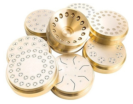 Фильера бронзовая Kocateq Die Bronze №84 (OMJ3) используется на предприятиях общественного питания и торговли для приготовления макаронных изделий формой № 84 Sedanini rigati (в виде полой трубочки диаметром 8 мм). Фильера изготовлена из бронзы. Внимание! На фото аналогичная модель другого типоразмера. Особенности: