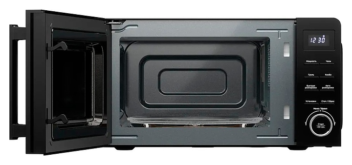 Микроволновая печь Kuppersberg TMW 202 B предназначена для приготовления пищи, подогрева готовых блюд и ингридиентов, а также размораживания полуфабрикатов в гостиницах, офисах и домашних условиях. Модель оснащена камерой с кварцевым грилем, левосторонней распашной дрерью со смотровым окном и уплощенной вертикальной рукояткой, кабелем питания с вилкой, расположенной с правой стороны фронта электромеханической панелью управления с поворотным переключателем, нажимными функциональными клавишами и цифровым дисплеем с белой подсветкой индикации. Корпус выполнен из стали с антикоррозийным покрытием черного цвета, дверь с полным фронтальным остеклением, тарелка – из ударопрочного стекла, панель управления – из черного пластика, фурнитура черного цвета, переключатель с серебристой окантовкой. Комплектация: