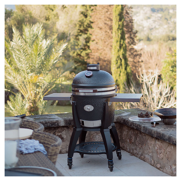Гриль керамический Monolith Grill AVANTGARDE.66 (LeChef) черный матовый с боковыми столиками и подставкой