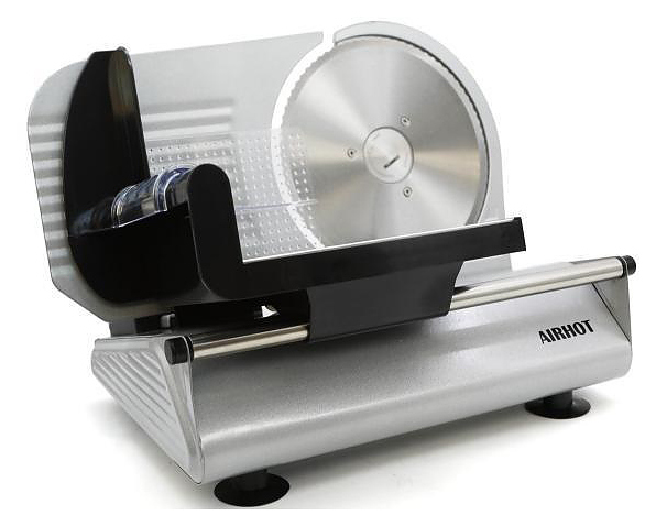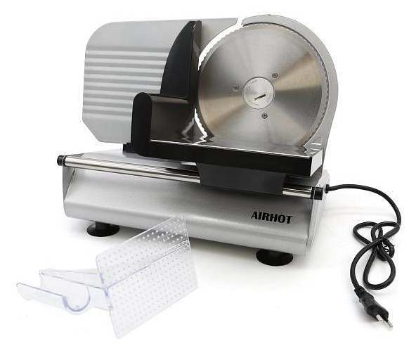Слайсер Airhot SL 190E предназначен для нарезки мяса, сыра, колбасных изделий, картофеля для домашних чипсов, капусты, моркови баклажанов и кабачков для салата и других продуктов питания на ровные и равные ломтики на предприятиях общественного питания и торговли. Модель оснащена скользящей платформой для пищевых продуктов, ручкой регулировки толщины ломтиков и резиновыми ножками-присосками. Корпус и толкатель выполнены из пластика, каретка и нож - из нержавеющей стали. Слайсер не предназначен для нарезки продуктов глубокой заморозки, костей и упакованных продуктов. В комплект поставки входит толкатель. Дополнительные характеристики: