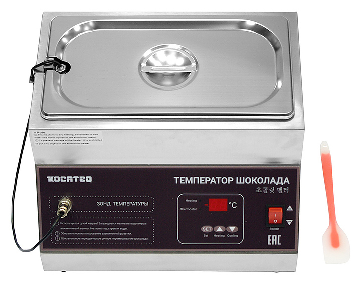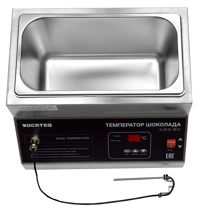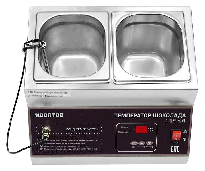 Температор Kocateq DHC meltingchoc mini предназначен для плавления и поддержания в горячем состоянии шоколада и глазури на предприятиях общественного питания и торговли. Модель оснащена ванной под гастроемкость, электронным термостатом для установки температуры, термощупом и нагревательными пластинами. Корпус выполнен из нержавеющей стали AISI 201, пластины - из алюминия. Особенности: