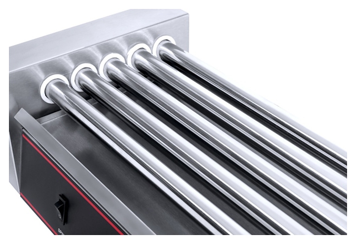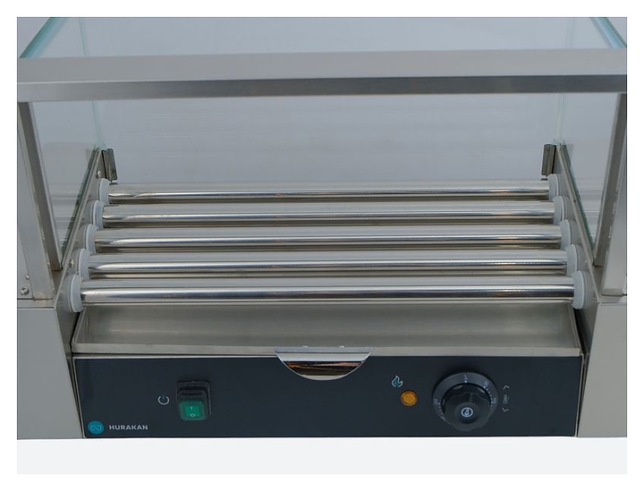 Роликовый гриль Hurakan HKN-GW5M предназначен для обжаривания сосисок и сарделек, мясных и рыбных рулетов на предприятиях общественного питания и торговли. Модель оснащена защитным экраном. Корпус и ролики выполнены из нержавеющей стали. Дополнительные характеристики: