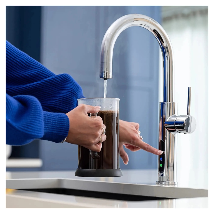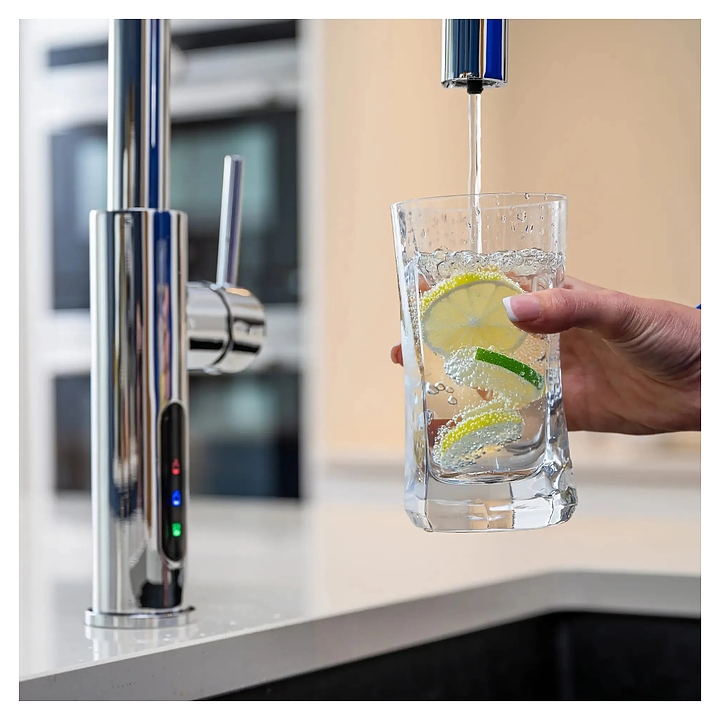 Система мгновенного кипячения воды ArtisanTech 5 в 1 Aquahot Aspen - инновационный кухонный смеситель с бойлером используется для получения кипятка, горячей, холодной и фильтрованной воды в загородных домах и квартирах. Система нагрева и фильтрации, располагается под раковиной и включает в себя: изолированный резервуар, обеспечивающий мгновенный доступ к кипящей воде, прямое подключение к водопроводу для холодной, горячей и фильтрованной воды, интегрированные фильтры, очищающие воду от примесей, систему газации и охлаждения и простую систему переключения между режимами. Модель оснашена интуитивно понятным управлением. Смеситель изготовлен из высококачественной латуни. Внимание! Баллон с газом в комплект поставки не входит и приобретается отдельно. Комплект поставки: