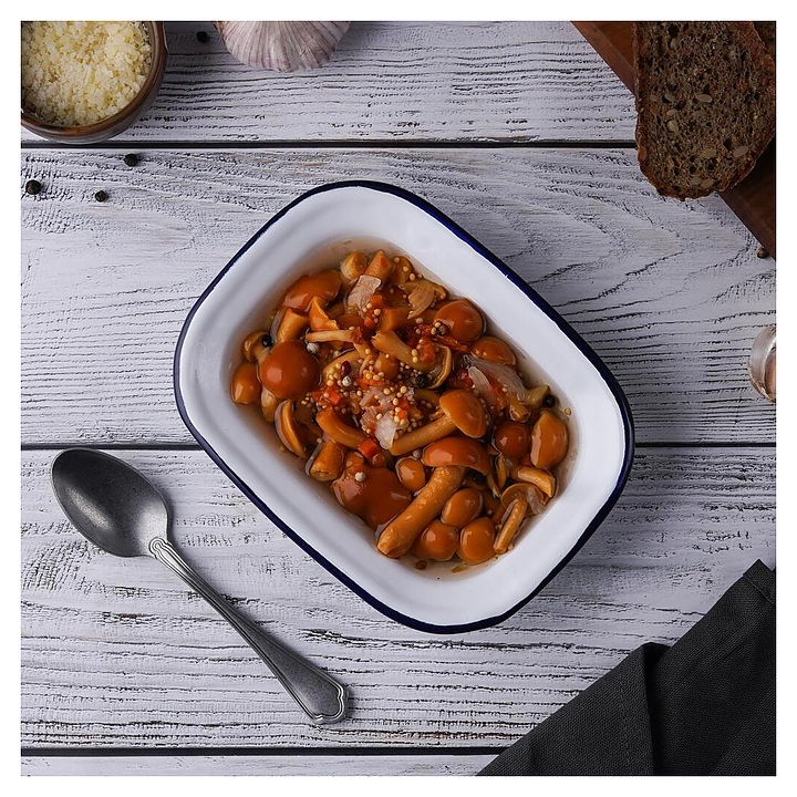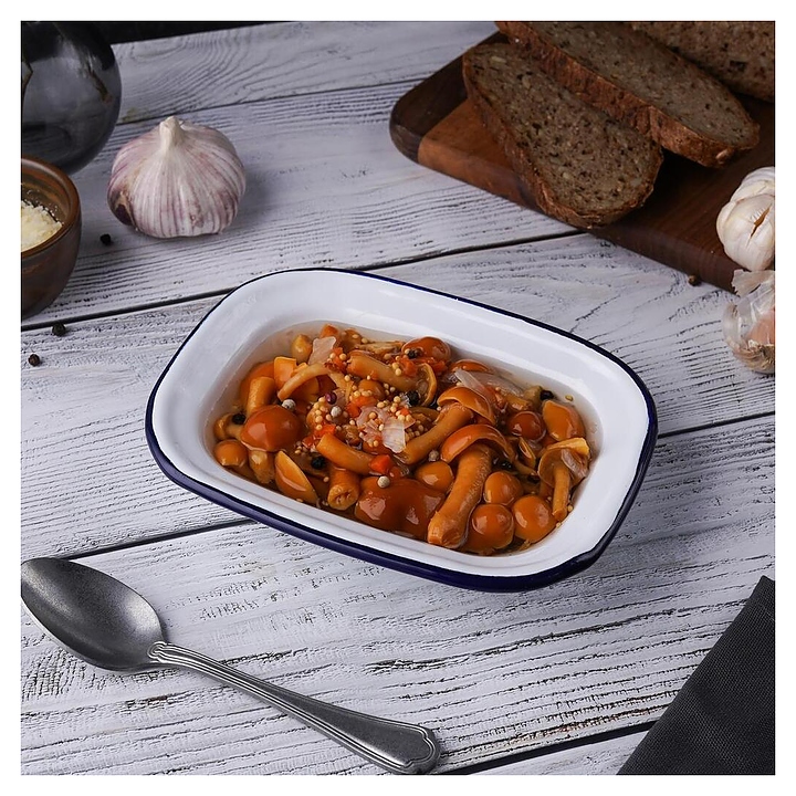 Блюдо сервировочное Sunnex CEP9077 Blue Rim 250 мл 16х12 см h=4 см (эмалированная сталь) прямоугольное