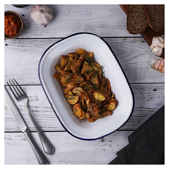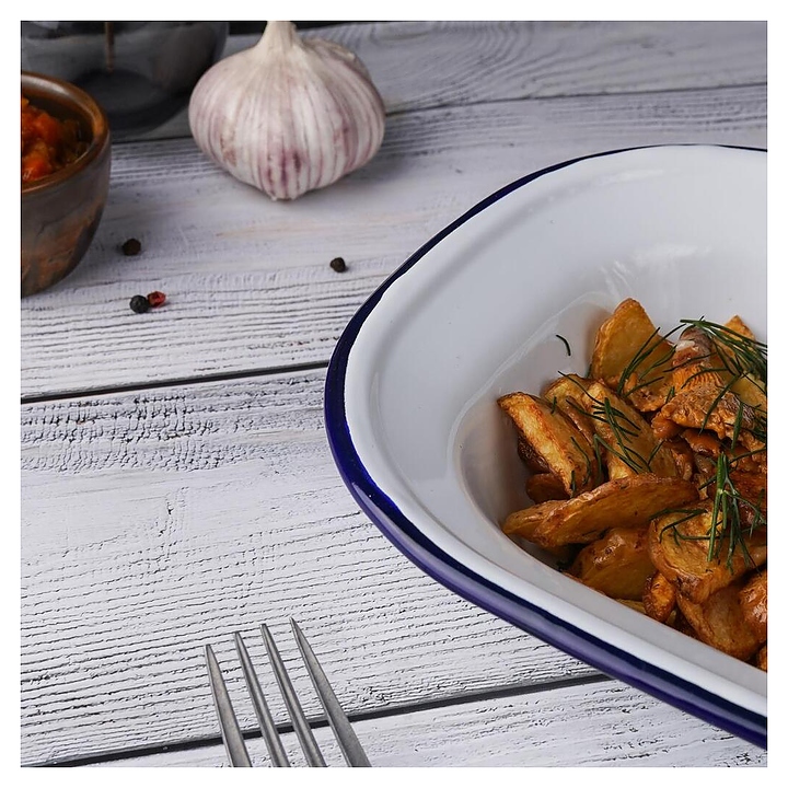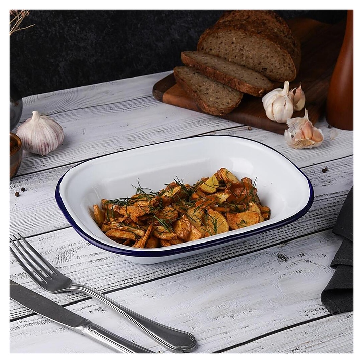 Блюдо сервировочное Sunnex CEP9081 Blue Rim 1000 мл 24,7х18,5 см h=6 см (эмалированная сталь) прямоугольное