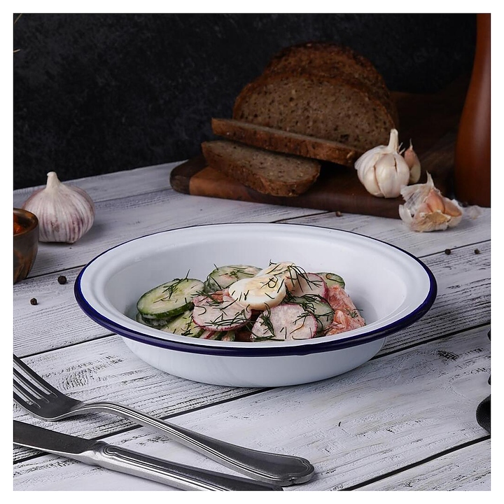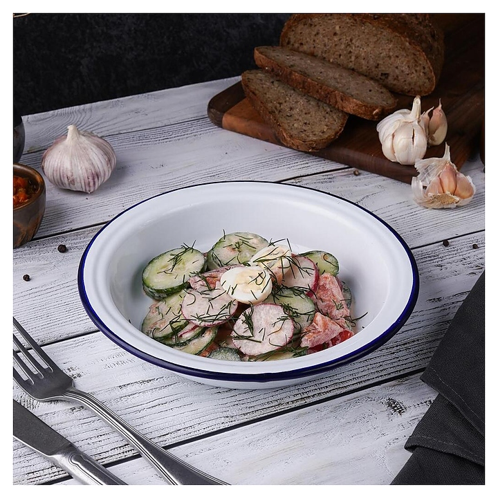 Салатник Sunnex CEP9086 Blue Rim 700 мл d=21 см h=3,9 см (эмалированная сталь)