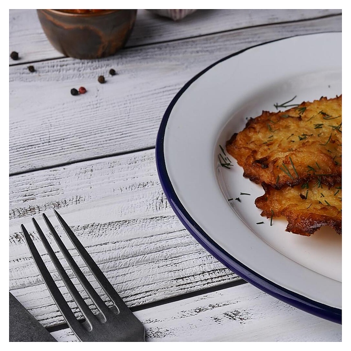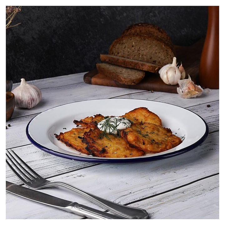 Тарелка Sunnex CEP2061 Blue Rim предназначена для подачи различных блюд на предприятиях общественного питания и в домашних условиях. Емкость круглого сечения оснащена расширенным кверху бортом с полями и выступающей кромкой. Возможна мойка в посудомоечной машине. Изделие выполнено из стали с эмалированной поверхностью белого цвета и декорировано синей окантовкой на кромке.