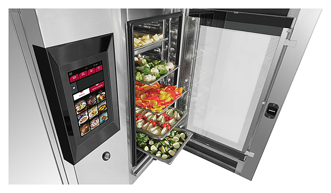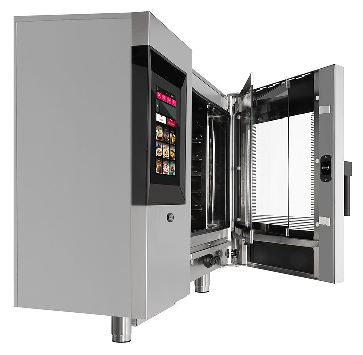 Электрический пароконвектомат Giorik Steambox Evolution H SNHE062W предназначен для приготовления различных блюд, выпечки хлебобулочных и кондитерских изделий на предприятиях общественного питания и торговли, в пекарнях и кондитерских. Модель оснащена сенсорной панелью управления слева. Автореверс с изменением времени вращения зависит от заданного цикла приготовления. Единая система контроля влажности Meteo System позволяет постоянно следить за климатической обстановкой внутри рабочей камеры. Дверь выполнена из двойного стекла, который защищает от ожогов. В комплект поставки входят 1-точечный термощуп, ручное душирующее устройство и Wi-Fi модуль. Рекомендуется дополнительно приобрести водоумягчитель и фильтр-систему для очистки и смягчения воды. Подробнее о необходимости водоподготовки читайте здесь. Особенности: