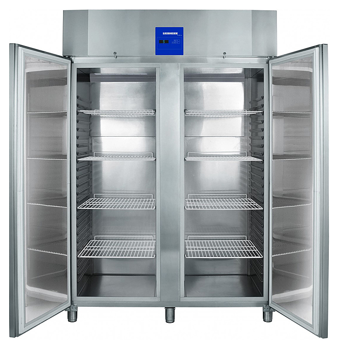 Морозильный шкаф Liebherr GGPv 1470 серии ProfiLine предназначен для заморозки, охлаждения и длительного хранения продуктов и полуфабрикатов на предприятиях общественного питания и торговли. Модель оснащена сенсорным управлением и цифровой индикацией температуры. Внутренняя прокладка выполнена из хрома, никеля и стали, корпус и дверь - из нержавеющей стали, покрытие решеток - из пластика. Особенности: