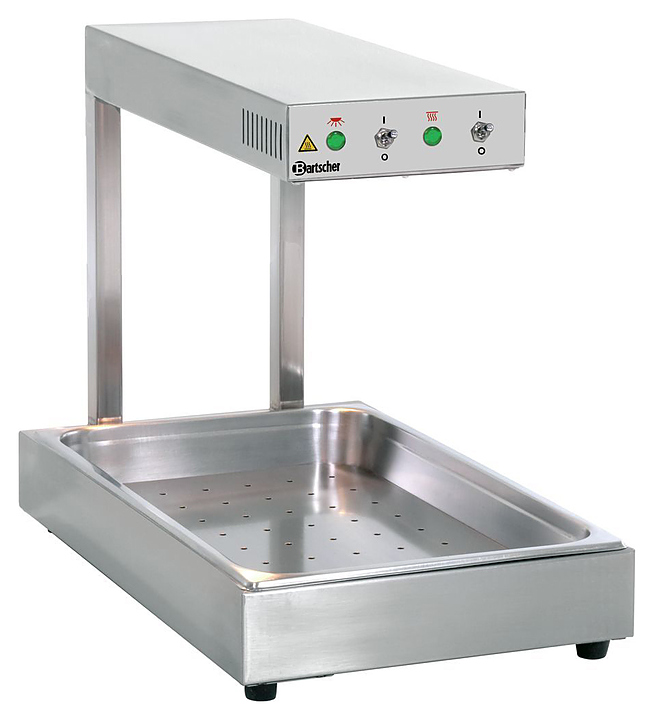 Инфракрасный подогреватель Bartscher IHR1000 A114001 предназначен для подогрева и поддержания в теплом состоянии готовых блюд на предприятиях общественного питания и торговли. Модель оснащена инфракрасными нагревательными трубами. Корпус выполнен из хромникелевой стали. В комплект поставки входят гастроемкость из нержавеющей стали GN 1/1 глубиной 65 мм и перфорированный лист. Дополнительные характеристики: