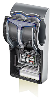 Сушилка для рук Dyson Air Blade AB14 используется в туалетных комнатах кафе, баров, ресторанов, торговых центров, офисов и других общественных мест с большой проходимостью для быстрой сушки и дезинфекции рук. Корпус выполнен из ABS-поликарбоната, покрытого антибактериальным слоем, убивающим 99,9% микробов и бактерий на поверхности. Особенности: