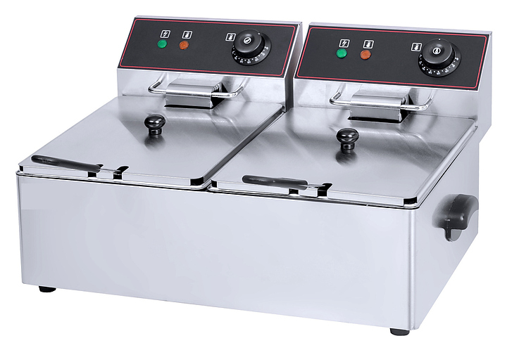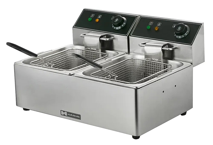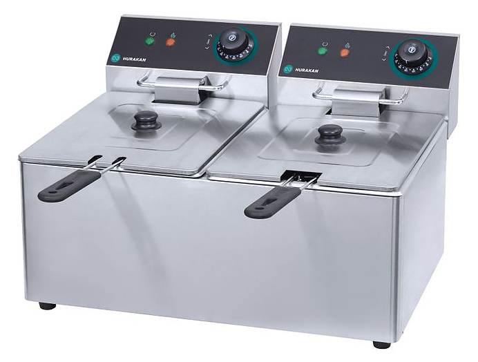 Фритюрница Hurakan HKN-FT44N предназначена для приготовления широкого спектра блюд в большом объеме разогретого до определенной температуры масла или жира на предприятиях общественного питания и торговли. Модель оснащена электромеханической системой управления, регулировкой температуры и холодной зоной. Корпус и чаша выполнены из нержавеющей стали. В комплект поставки входят 2 корзины с 2 крышками. Особенности: