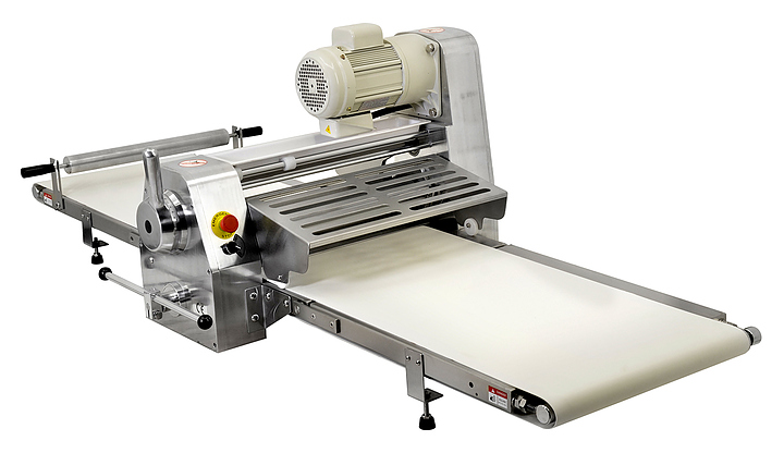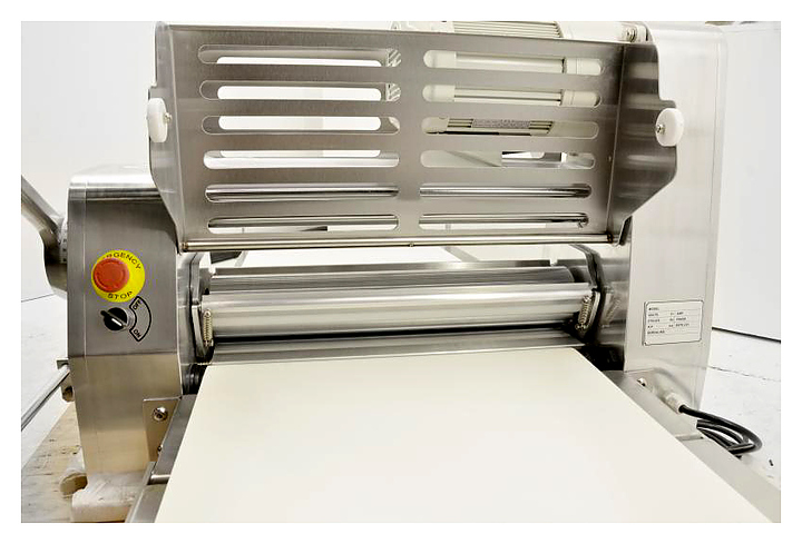 Тестораскаточная машина Kocateq OMJ520B используется на предприятиях общественного питания и торговли, в пекарнях и кондитерских для нарезания и раскатывания теста. Поверхности валков - из зеркально полированного хрома, скребок - из пластика, полотна конвейера - из нетканого полимерного материала, защитные экраны валков - из нержавеющей стали AISI 304, корпус - из стали, покрытой порошковой полимерной эмалью. Особенности:
