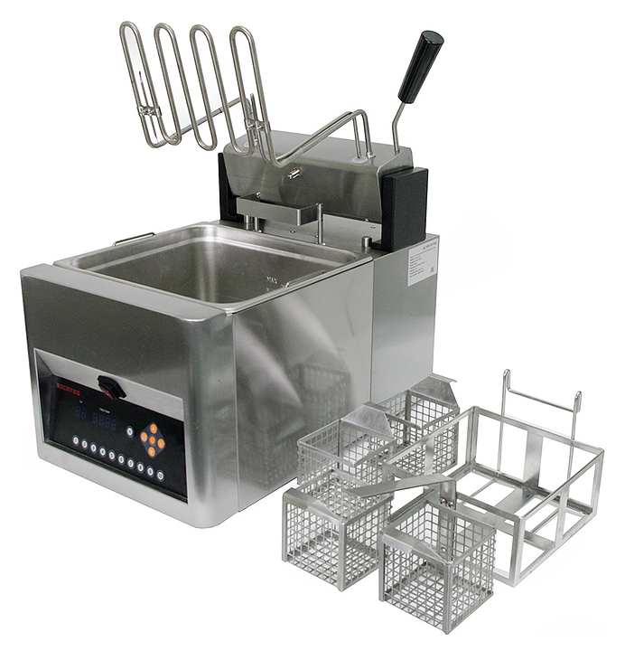 Макароноварка Kocateq EST12LC10 используется на предприятиях общественного питания и торговли для отваривания кукурузы, фрикаделек, макаронных изделий, пельменей, вареников, овощей, фруктов и прочих продуктов. Модель оснащена программируемой панелью управления и контролем времени, оставшегося до окончания приготовления. 4 порционных вкладыша и корпус выполнены из нержавеющей стали AISI 304. Особенности: