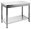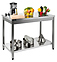 Столешница стола Koбор СП-120/60 используется на предприятиях общественного питания и торговли для разделывания и обработки пищевых продуктов, а также в качестве вспомогательной поверхности для кухонного оборудования. Каркас выполнен из квадратной трубы 40х40 мм нержавеющей стали, столешница и полка - из нержавеющей стали AISI 430, столешница укреплена листом ламинированной древесностружечной плиты с внутренней стороны.