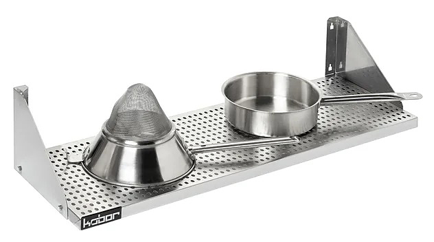 Полка Кобор ПР-90/30 имеет боковые борты, что помогает избежать падения предметов, находящихся на ней. Изделие полностью выполнено из нержавеющей стали, не поддается коррозии.