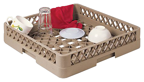 Кассета с плоским дном и крупной ячейкой Kocateq JWS предназначена для мытья посуды, кухонных принадлежностей, стаканов и чашек в посудомоечных машинах с фронтальной загрузкой и конвейерного типа. Изделие изготовлено из пищевого полипропилена. Особенности: