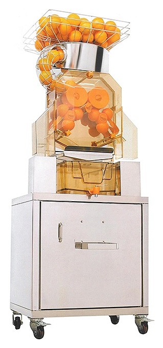 Соковыжималка Kocateq WF2000ASJ предназначена для приготовления натурального сока из апельсинов на предприятиях общественного питания и торговли. Модель оснащена стандартной панелью управления и автоматическим контроллером с функцией учета. Защитный экран выполнен из поликарбоната, корпус и тумба - из нержавеющей стали AISI 304. Особенности:
