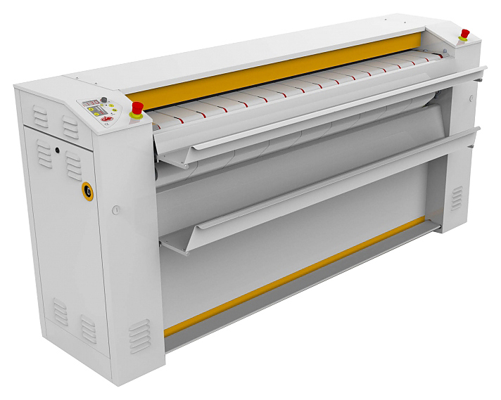 Гладильно-сушильный каток GMP G 15.35 используется в прачечных образовательных, оздоровительных заведениях, гостиницах, детских садах, общежитиях, больницах, роддомах и прачечных самообслуживания для глажения прямого белья с остаточной влажностью 50%. Модель оснащена педалью ножного управления. Гладильные ремни выполнены из полированной стали с термостойким покрытием NOMEX. Особенности:
