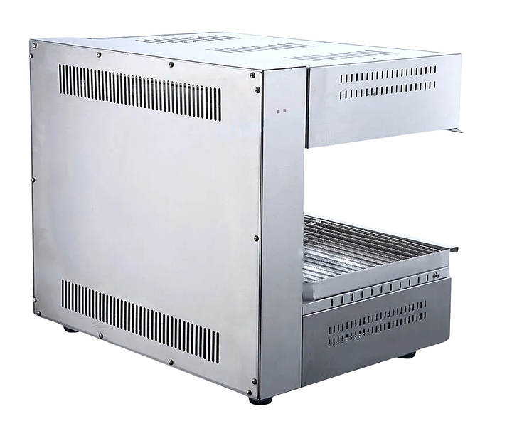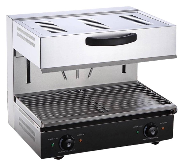 Гриль Salamander EKSI HES-450 предназначен для обжаривания стейков и сосисок, приготовления сэндвичей, полуфабрикатов, подогрева булочек, гамбургеров, хот-догов на предприятиях общественного питания и торговли. Модель оснащена 2 терморегуляторами с индивидуальным термостатом для каждой зоны, регулирующейся по высоте верхней чатью, эргономичной ненагревающейся ручкой и съемной решеткой с поддоном для сбора жира. Корпус выполнен из нержавеющей стали. Дополнительные характеристики: