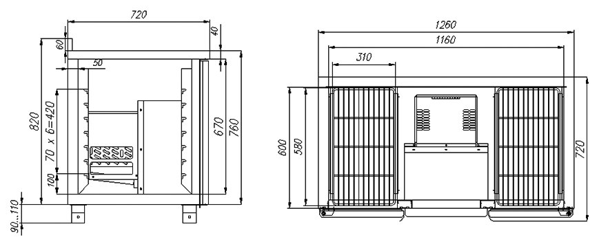 Стол холодильный Carboma T70 M2-1-G 0430-2 (2GNG/NT) с бортом
