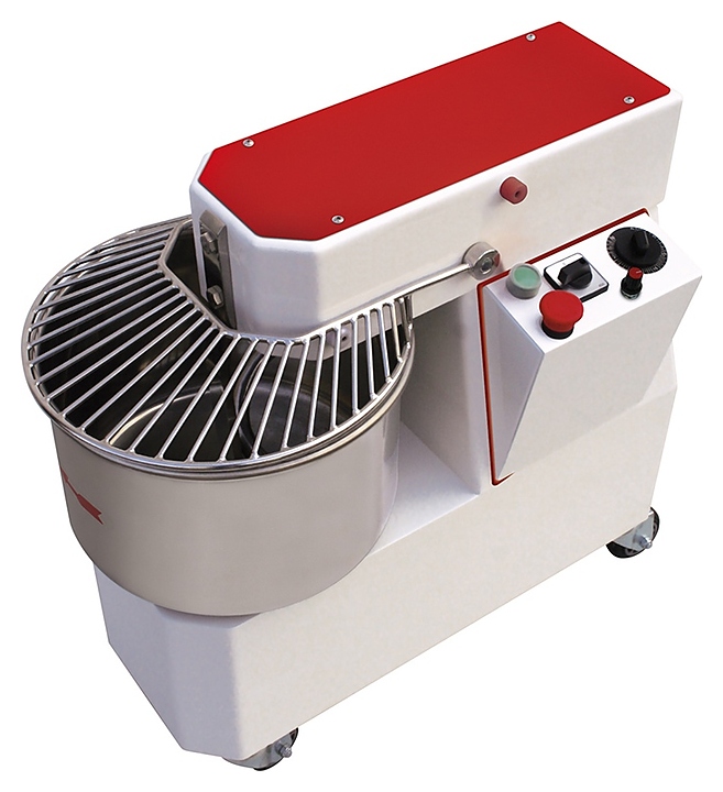Спиральный тестомес Pizza Group IR33 VS используется на предприятиях пищевой промышленности, общественного питания и торговли для замеса теста для приготовления пиццы, хлеба и тонких лепешек. Модель оснащена наклонной панелью управления с потенциометром для изменения скорости, таймером, защитной решеткой над дежой и колесами. Спираль, решетка, дежа и отсекатель выполнены из высококачественной нержавеющей стали. Особенности:
