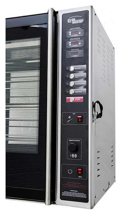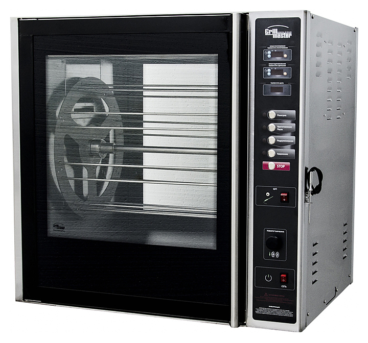Гриль для кур Grill Master Ф3КЭЛ/1 используется на предприятиях общественного питания и торговли для приготовления тушек кур, куриных окорочков, грудок и других продуктов. Модель оснащена программируемой трёхуровневой системой приготовления продукта, вентилятором конвекции, термощупом и стеклянными дверьми с энергосберегающим покрытием. Все внешние и внутренние панели выполнены из нержавеющей стали, корпус выполнен из нержавеющей стали со специальным черным покрытием. Электронная панель управления 1 уровня или электронная панель управления 2 уровня с тачскрином указывается при заказе. Режимы приготовления:
