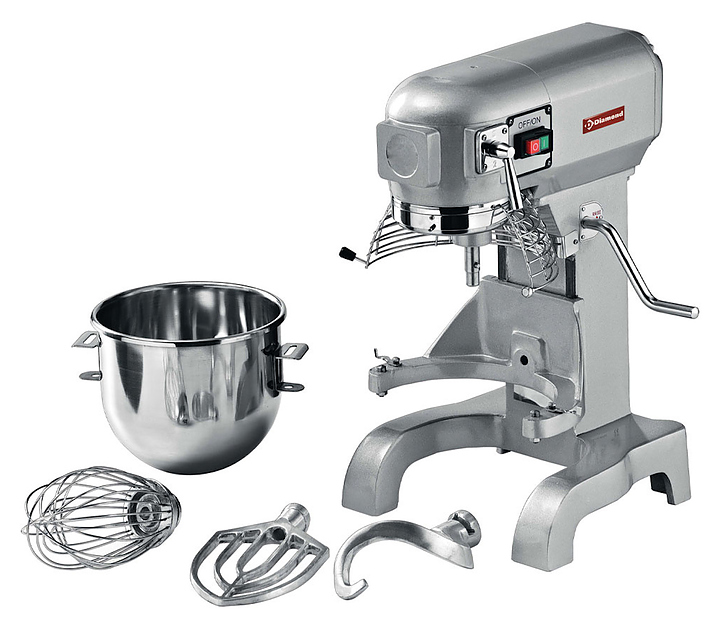 Планетарный миксер Sirman Plutone 10 предназначен для замеса теста жидкой и средней консистенции, в том числе белкового, заварного, дрожжевого, бисквитного, а также для приготовления пюре, майонеза, различных соусов, взбитых сливок на предприятиях общественного питания и торговли, в пекарнях и кондитерских. Модель оснащена вентилируемым двигателем. В комплект поставки входят 3 насадки: венчик из алюминиевого сплава и стали, лопатка и крюк из алюминиевого сплава. Особенности: