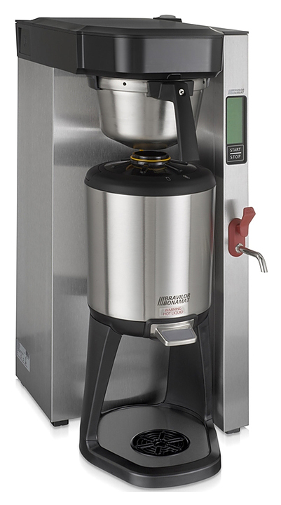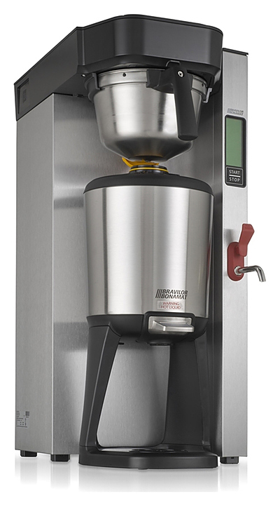 Кофеварка Bravilor Bonamat Aurora 5.7 L SGH используется на предприятиях общественного питания и торговли для приготовления фильтрованного кофе непосредственно в портативный термос Termos dispenser Aurora 5.7 L 3 вкусов: мягкой, средней и темной обжарки, а также в 4 объемах: 1,9, 2,2, 3,8 и 5,7 литров. Модель оснащена жидкокристаллическим дисплеем и сенсорным экраном, с помощью которого можно выбрать предварительно установленные программы, системой кофеварения и отдельным краном горячей воды. Портативный термос заказывается отдельно. Особенности: